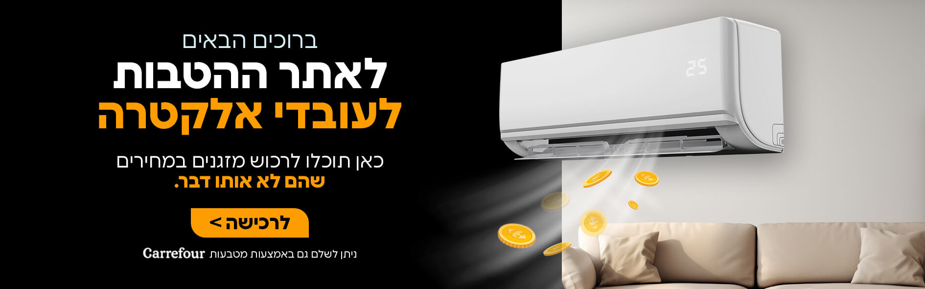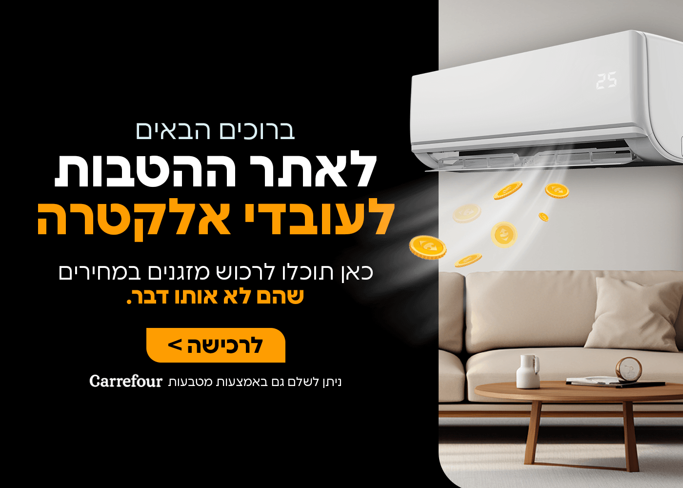 הפריסה לתשלומים משתנה מעסקה לעסקה על פי סכום הקניה. אפשרויות חלוקת התשלומים יוצגו לכם במסך הרלוונטי.
